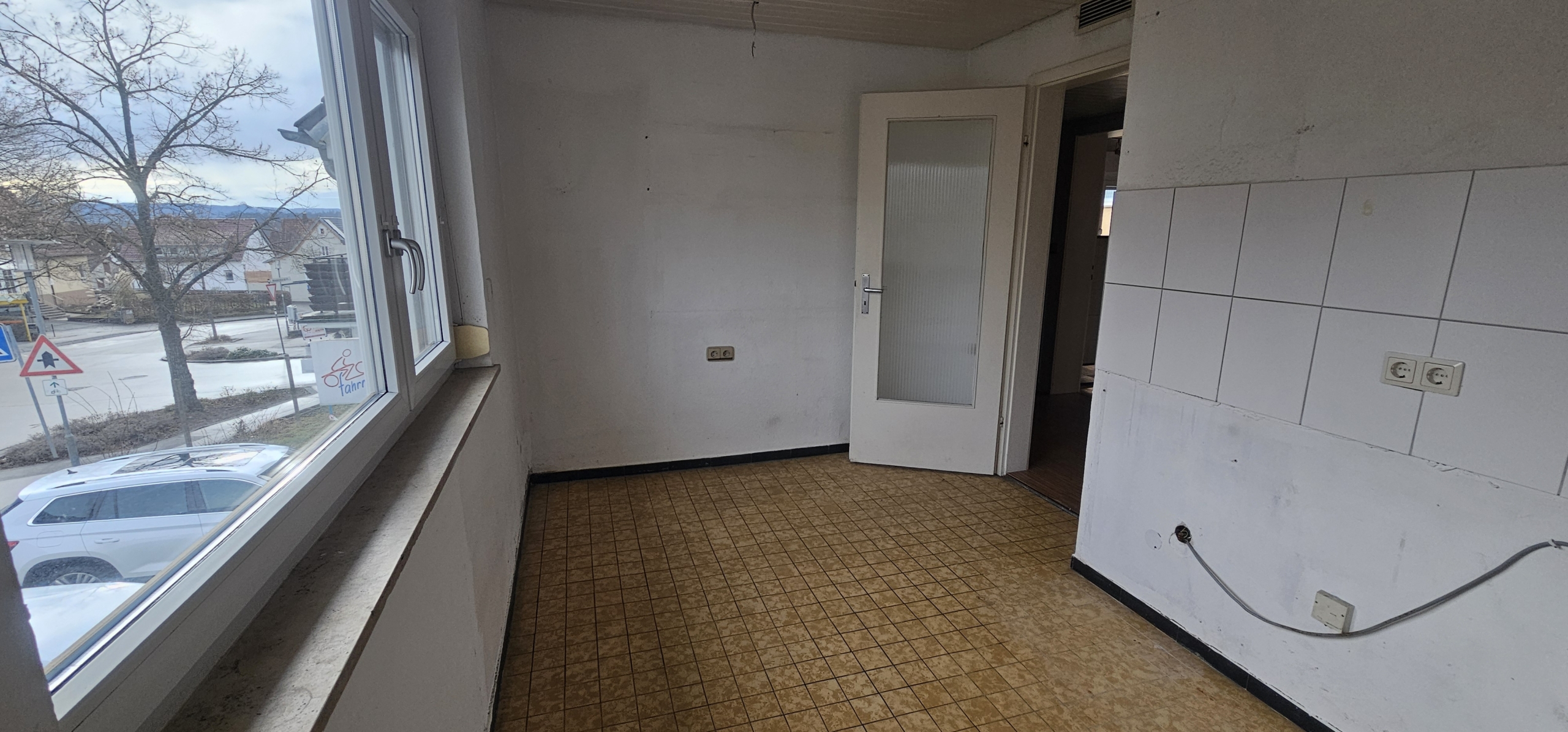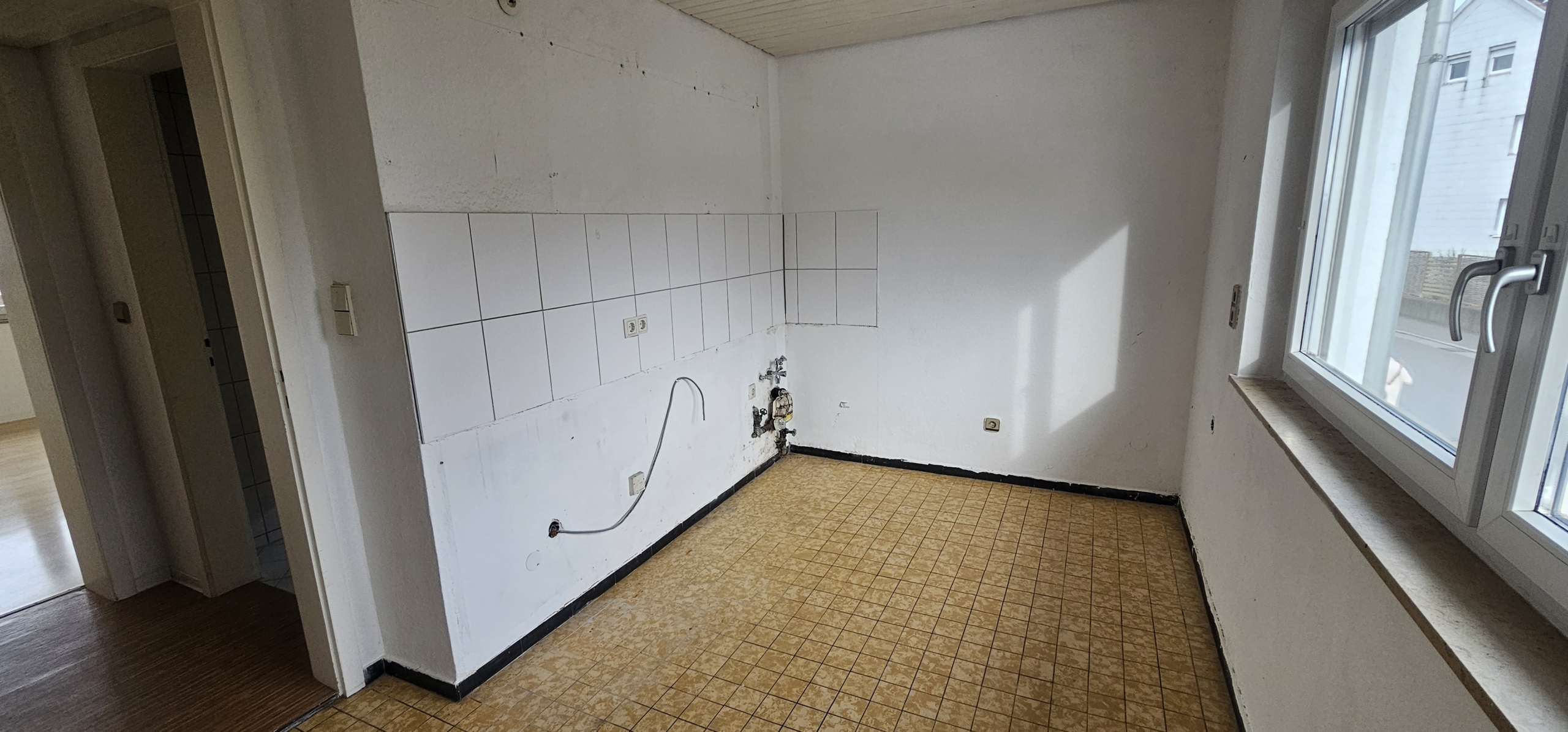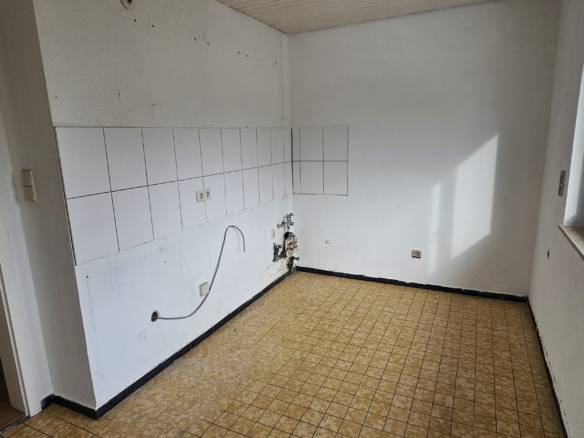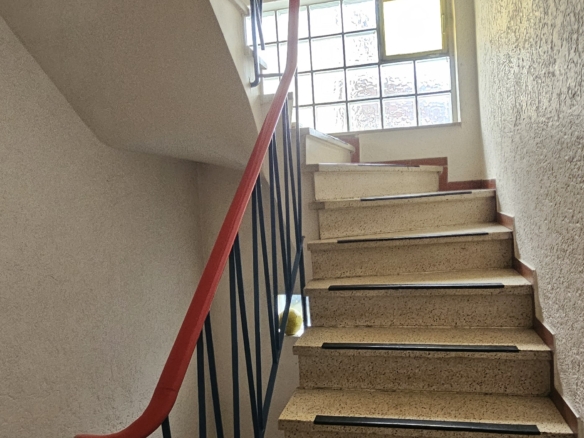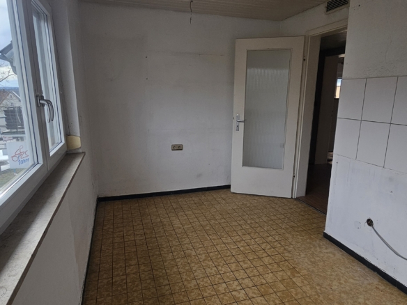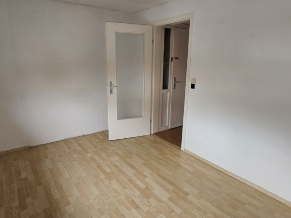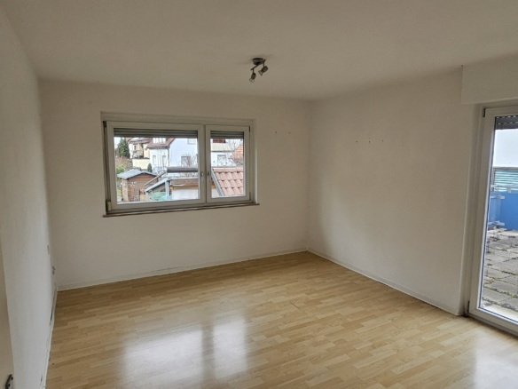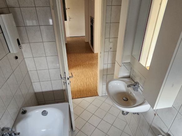Die Wohnung liegt im 1. Stock eines gepflegten Mehrfamilienhauses aus den 1970er Jahren und bietet eine große Terrasse/Balkon. Direkt gegenüber befindet sich eine Bäckerei und Bushaltestelle. Du erreichst Kindergarten, Sporthalle und die Albert-Schweitzer-Schule fußläufig sowie Einkaufsmöglichkeiten (Lidl, Penny, dm etc.) in 500m Entfernung.