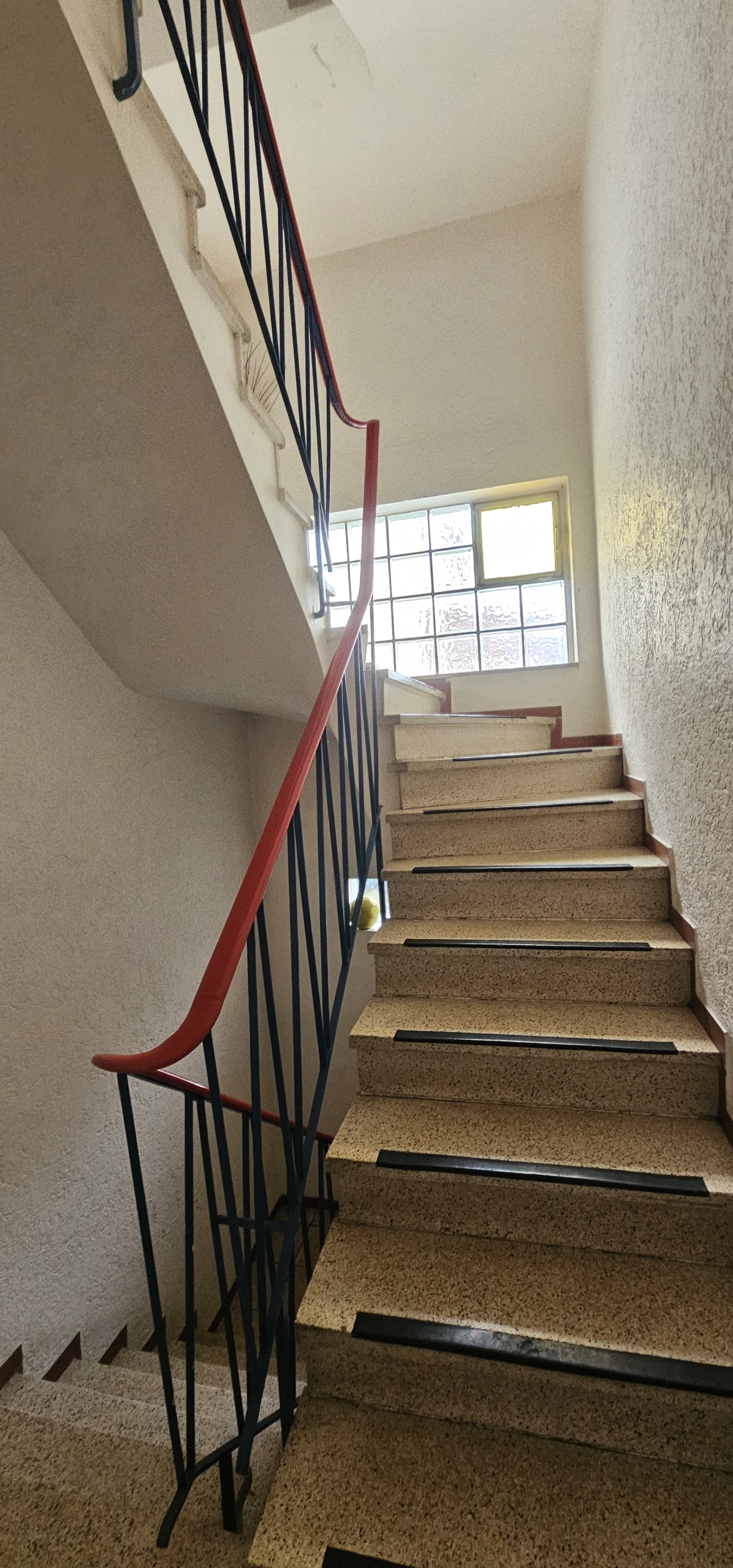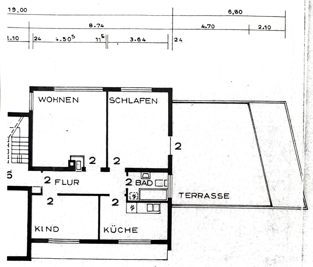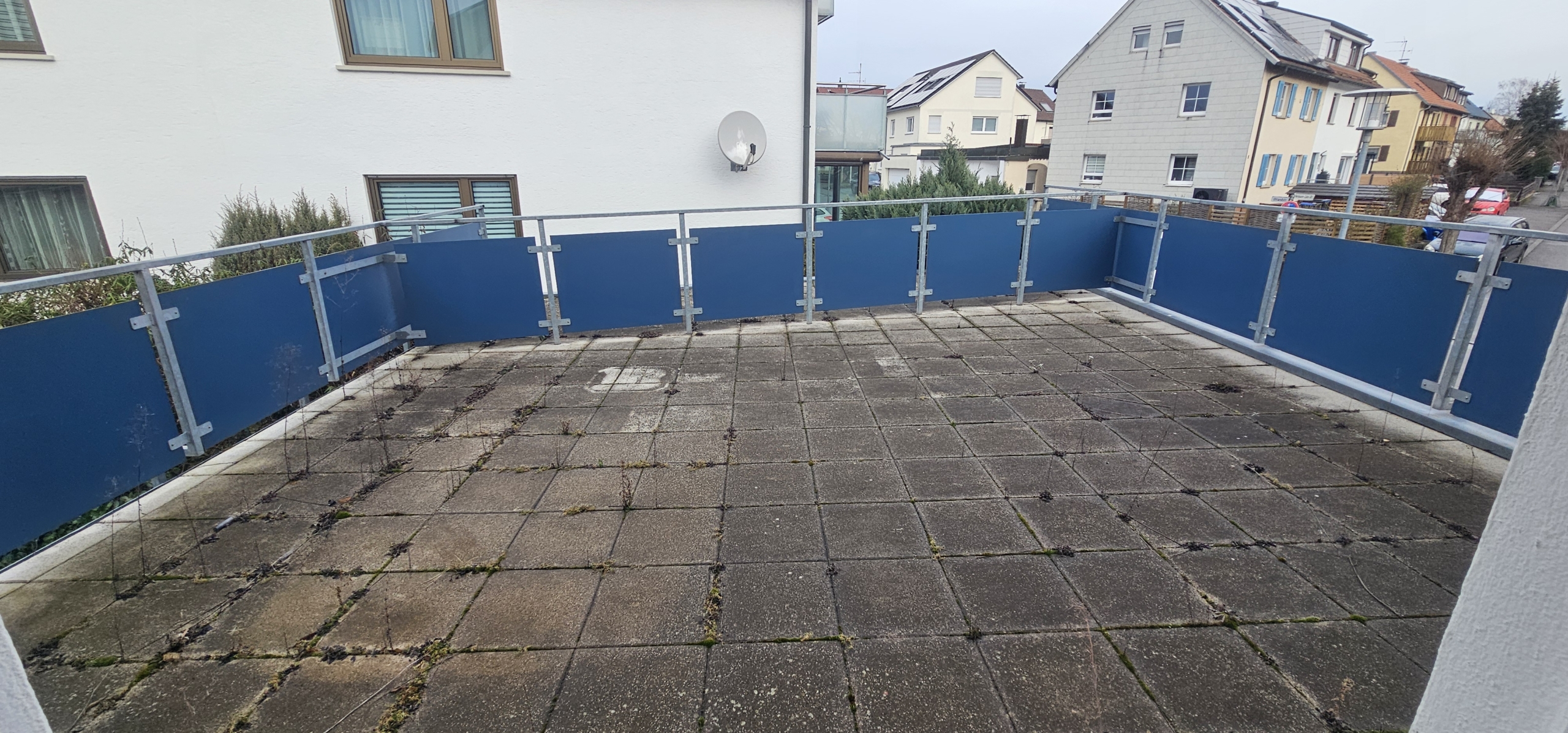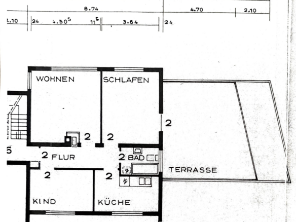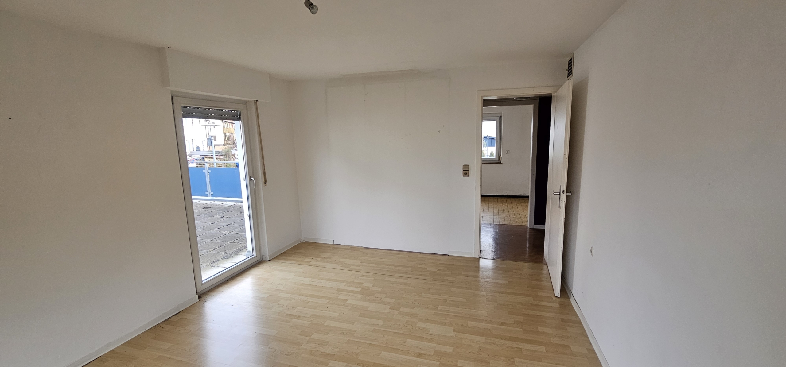 Die Wohnung liegt im 1. Stock eines gepflegten Mehrfamilienhauses aus den 1970er Jahren und bietet eine große Terrasse/Balkon. Direkt gegenüber befindet sich eine Bäckerei und Bushaltestelle. Du erreichst Kindergarten, Sporthalle und die Albert-Schweitzer-Schule fußläufig sowie Einkaufsmöglichkeiten (Lidl, Penny, dm etc.) in 500m Entfernung.